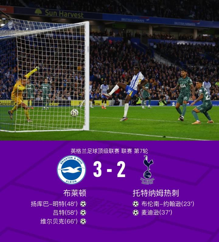 布莱顿逆转热刺获胜